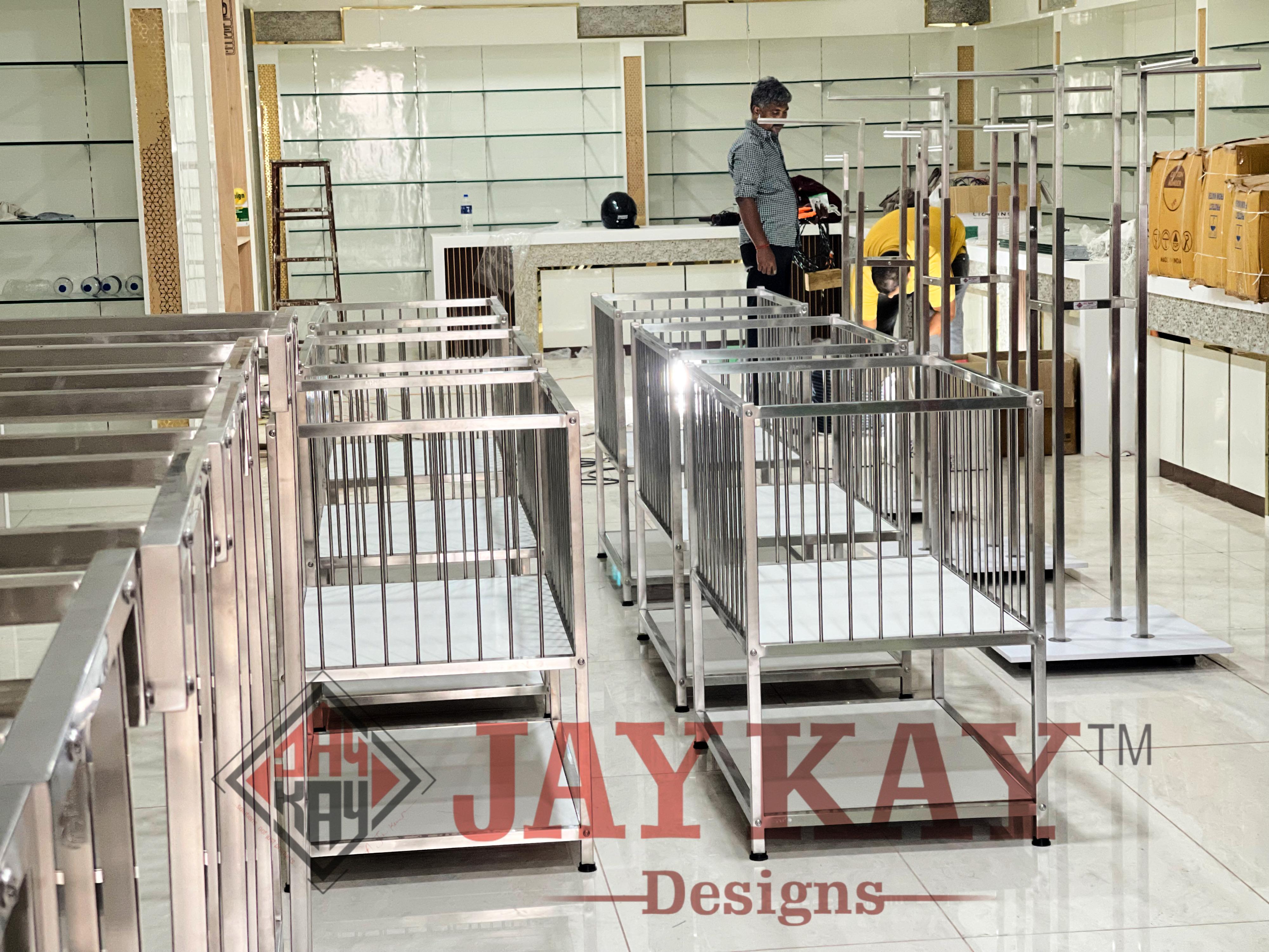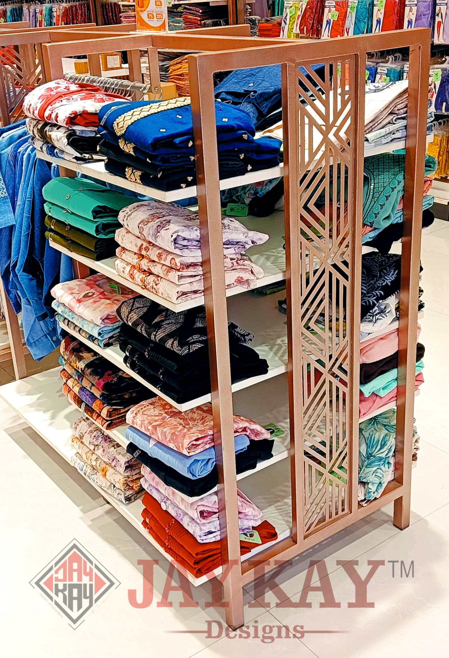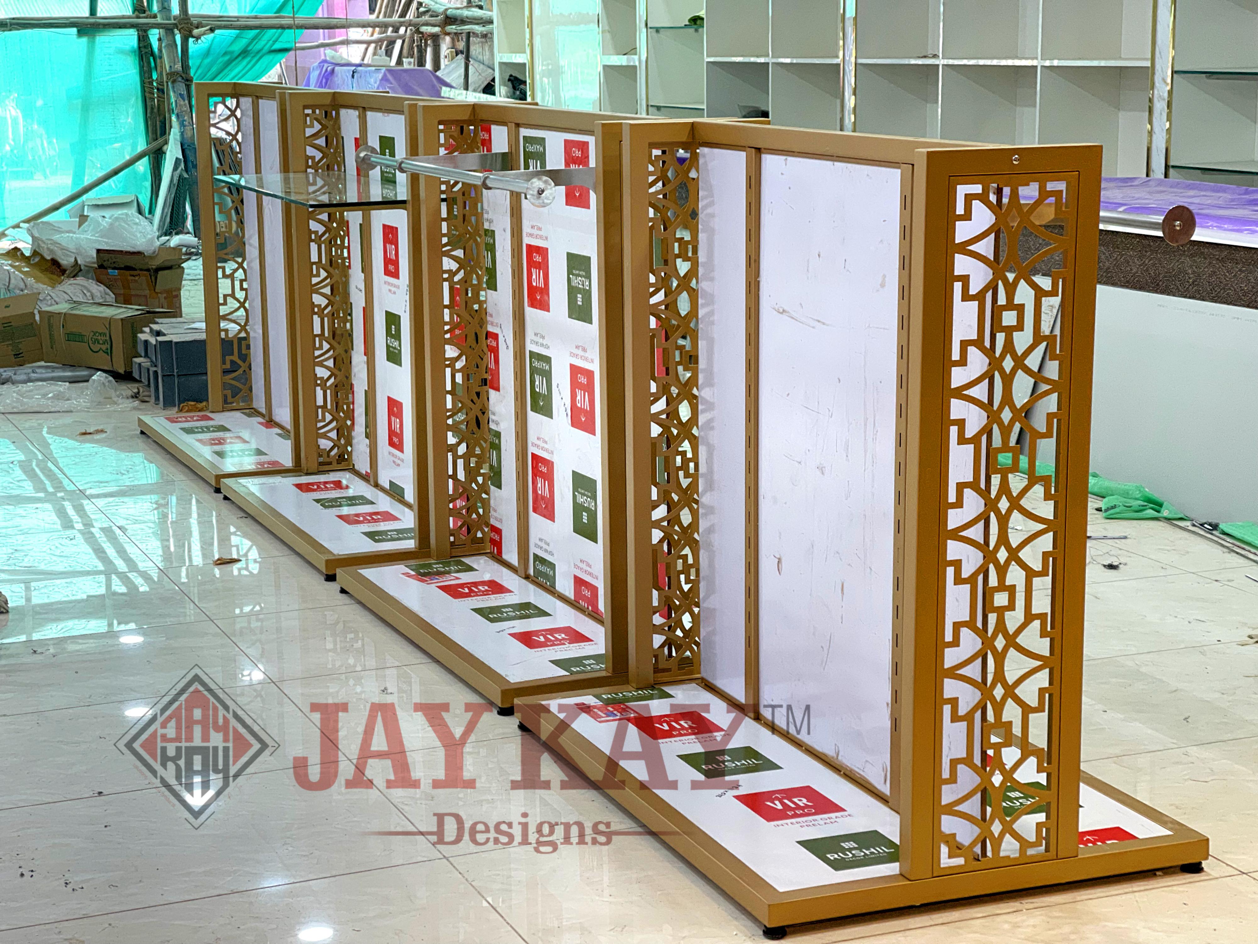 At Jay Kay Designs, we specialize in custom display racks, shelving systems, and fabrication for showrooms, helping businesses create an aesthetically appealing and functional retail space. Our expertise lies in designing and fabricating shelves, stands, and racks tailored to showcase your products effectively while enhancing customer engagement. We understand that every showroom has unique requirements, and our team works closely with clients to deliver high-quality, durable, and visually striking display solutions that align with their brand identity and space constraints.